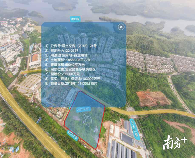 記者查閱發(fā)現(xiàn),該宗地塊周邊有別墅群、高層樓盤(pán)及待開(kāi)發(fā)的居住用地,臨近鐵崗水庫(kù),不遠(yuǎn)處有寶安公園。