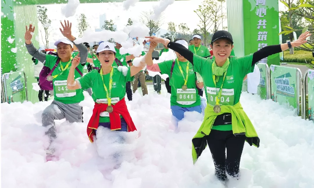 南山街道2018環(huán)鏟灣渠-桂廟渠生態(tài)歡樂跑全長5公里,共設(shè)置2個環(huán)保生態(tài)泡泡點、1個團隊任務(wù)挑戰(zhàn)游戲點、4個生態(tài)環(huán)保勛章打卡點,并設(shè)有南山街道精品特色社區(qū)黨建和生態(tài)環(huán)保建設(shè)的知識闖關(guān)答題環(huán)節(jié)。參與者到達終點,完成全部闖關(guān)任務(wù)之后可以領(lǐng)取一枚生態(tài)環(huán)保勛章。位于終點主會場的“充氣桌球”、“超級投籃”、“一飛沖天”、“超級扣籃”生態(tài)環(huán)保嘉年華游戲區(qū)域,更是讓全體跑友陷入了歡樂的海洋。起點、中途和終點都設(shè)有環(huán)境保護和精品特色社區(qū)創(chuàng)建的宣傳展板,多方位展示南山街道在河渠治理和精品特色社區(qū)建設(shè)方面做出的成績。