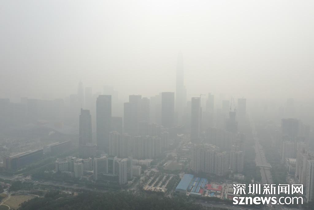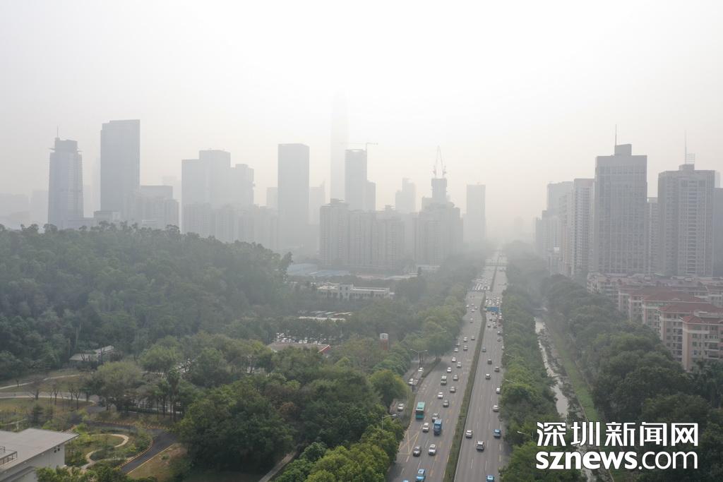 1月12日,霧霾襲深,深圳天氣君發(fā)布預警,今天最好不要在室外玩耍。記者中午用無人機航拍福田CBD區(qū)域,鏡頭下,市民中心和平安金融大廈兩個地標幾乎無法辨別,新洲路上能見度很低,一切都仿佛浸在化不開的濃湯里。深圳天氣君在微博提醒:弱北風影響下,不利于污染物擴散,我市中西部地區(qū)下午會持續(xù)十面“霾”伏,灰霾黃色預警信號生效中,各位盡量不要長時間戶外活動。
