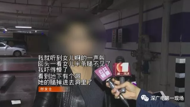 當時停車場燈光昏暗,付女士的女兒剛準備從后排左側(cè)的車門上車,就一腳踏進了這個坑里。