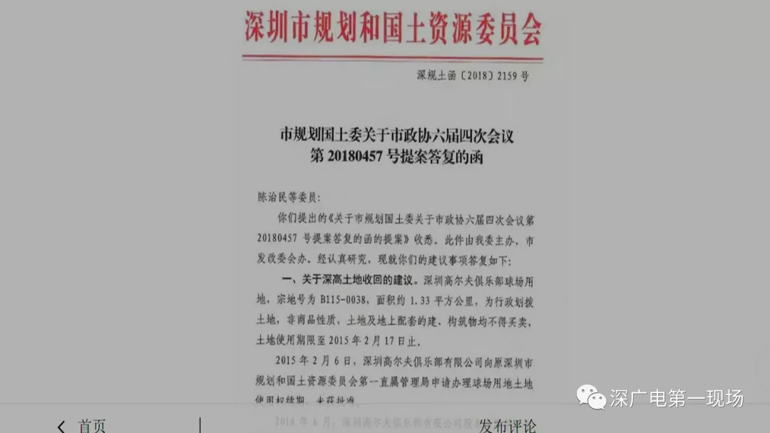 深圳高爾夫俱樂(lè)部球場(chǎng)用地的所有權(quán)問(wèn)題,一直備受關(guān)注。曾有委員提出提案,將高爾夫球場(chǎng)收回作為公共公園,這一提案在2018年也得到過(guò)市規(guī)劃國(guó)土委的回復(fù)。