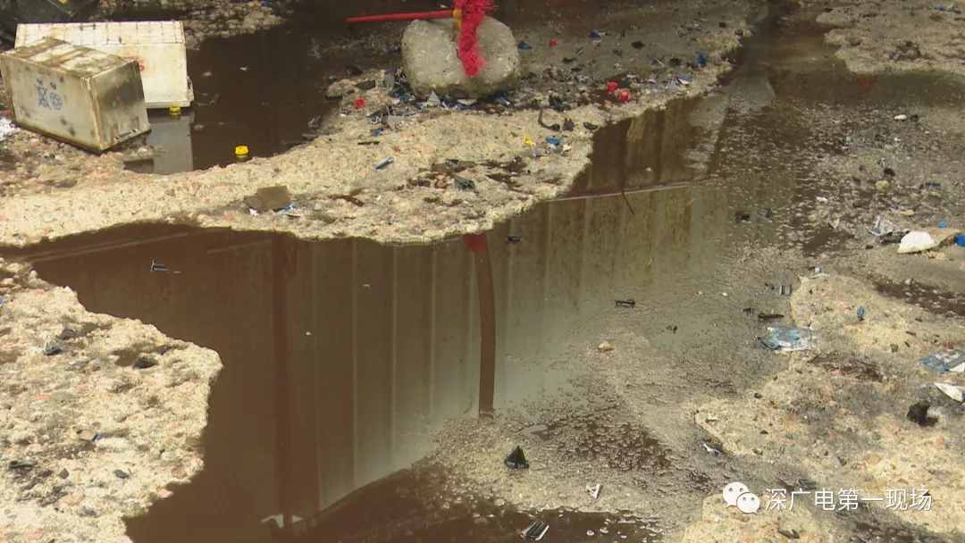 現(xiàn)場(chǎng)地表和圍擋的金屬,都已被強(qiáng)腐蝕性的電池廢液嚴(yán)重腐蝕。經(jīng)現(xiàn)場(chǎng)初步勘查得知,這里的電池廢液,通過地表流入了場(chǎng)內(nèi)的化糞池。執(zhí)法人員表示,廢液很有可能已影響到市政污水管網(wǎng)。