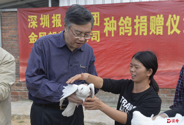 根據(jù)報業(yè)集團“因戶制宜一戶一策”“一個黨支部結對一戶貧困戶”的安排,鐘仿明選擇養(yǎng)鴿脫貧,兩年多來,集團金風帆物業(yè)公司共計為他送來四批480對種鴿,還請來深圳光明農(nóng)場的技術員,對他進行技術培訓?!?80對種鴿全部成活!”1月20日下午,看到親自來送種鴿的陳寅等報業(yè)集團領導,鐘仿明拿出一面錦旗,非常激動地說:“感謝黨的好政策,感謝深圳報業(yè)集團的真心幫扶!”