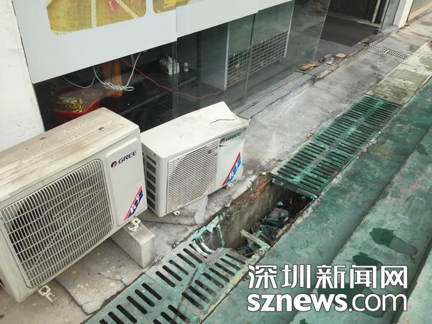 餐飲店老板告訴記者,當(dāng)時肇事車輛逆行直接沖下8級臺階,巨大的沖擊力將店門前的地板撞得粉碎,門口的空調(diào)機(jī)箱也受損嚴(yán)重。