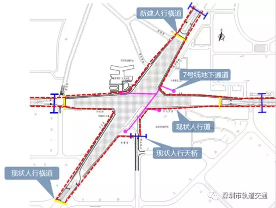3.地鐵運(yùn)營(yíng)時(shí)段內(nèi),可通過(guò)7號(hào)線黃木崗站地下通道以及4個(gè)出入口解決過(guò)街問(wèn)題。