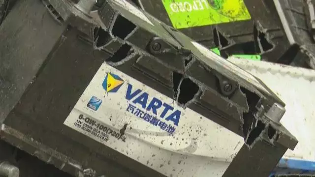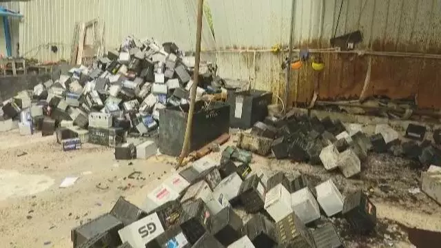 1月16日下午,記者跟隨南山區(qū)環(huán)保水務(wù)執(zhí)法人員,到現(xiàn)場(chǎng)查處,一處近500平米廢品回收?qǐng)稣緝?nèi),廢舊電池堆積如山,之前3名工人拿著類似砍刀的工具,用簡單粗爆方法,對(duì)電池進(jìn)行拆解。