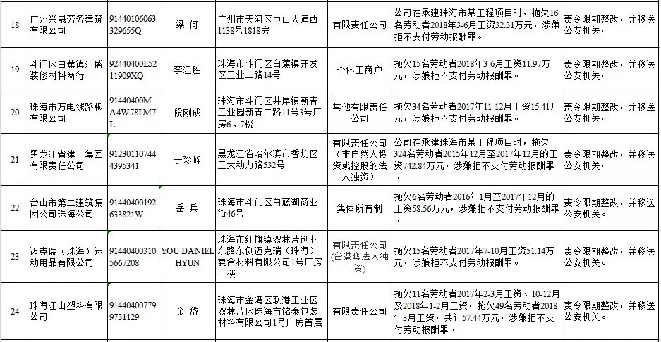 深圳新聞網(wǎng)2019年1月29日訊 (記者 劉婷)據(jù)廣東發(fā)布消息,省人社廳近日公布,2019年第一批用人單位重大勞動(dòng)保障違法行為名單。到底是哪些企業(yè)在惡意欠薪?這些“老賴”企業(yè)的營(yíng)業(yè)執(zhí)照、地址、法人等等超全信息都在這!
