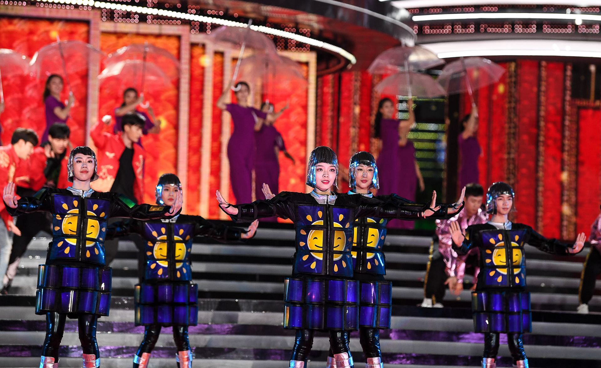 據(jù)本次晚會的視覺總監(jiān)李風(fēng)介紹,這次用屏量達(dá)到了5885個平方,是有史以來最多的?!岸页肆看笠酝?它整個的結(jié)構(gòu)特別復(fù)雜,因為它有200多個立體幾何面。整個城市樓宇我們定義成一幅長卷,同時它有個支點(diǎn),就是平安大廈這個高度,想用平安支點(diǎn)的這個立面來呈現(xiàn)節(jié)目單。”