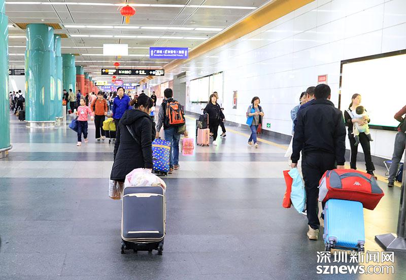 2月13日上午11點左右,深圳火車站內人流密集,不少接親友的市民聚集在東出站口前