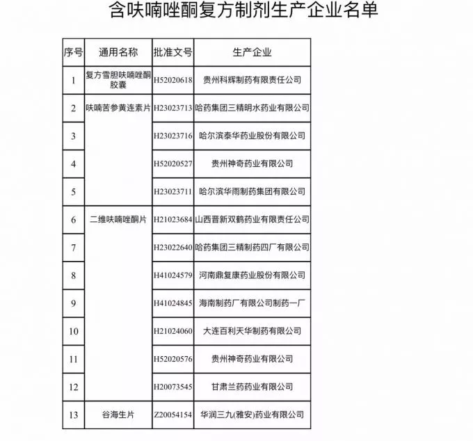 在公告中,國家藥監(jiān)局給出了四種禁用的含呋喃唑酮的復(fù)方制劑,分別為復(fù)方雪膽呋喃唑酮膠囊、呋喃苦參黃連素片、二維呋喃唑酮片、谷海生片,多用于治療消化系統(tǒng)炎癥。