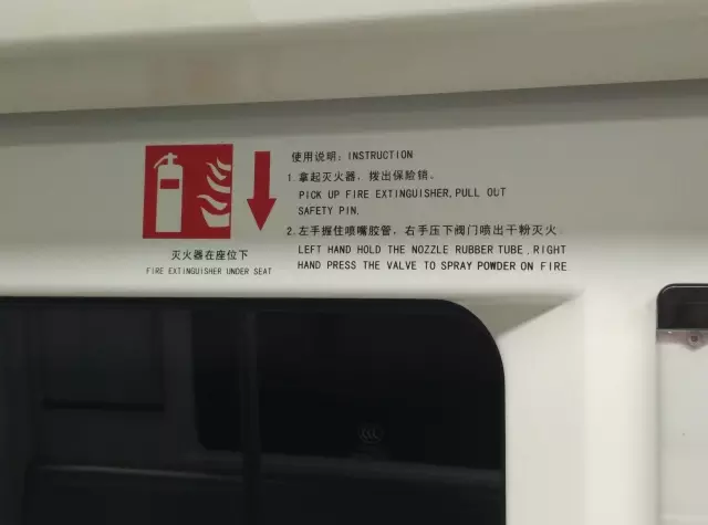 地鐵列車的滅火器布置于客室座椅下方,在其對應的上方設有相應的標志。滅火器每個客室有2個,其中在列車出現(xiàn)火情的情況下,乘客可自行取出滅火器,按要求對準起火點進行滅火。