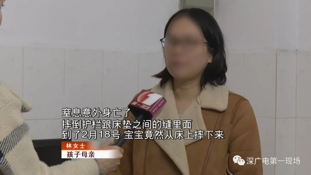近日,深圳林女士8個月大的女兒因摔在護欄和床墊間的縫隙里,窒息身亡了