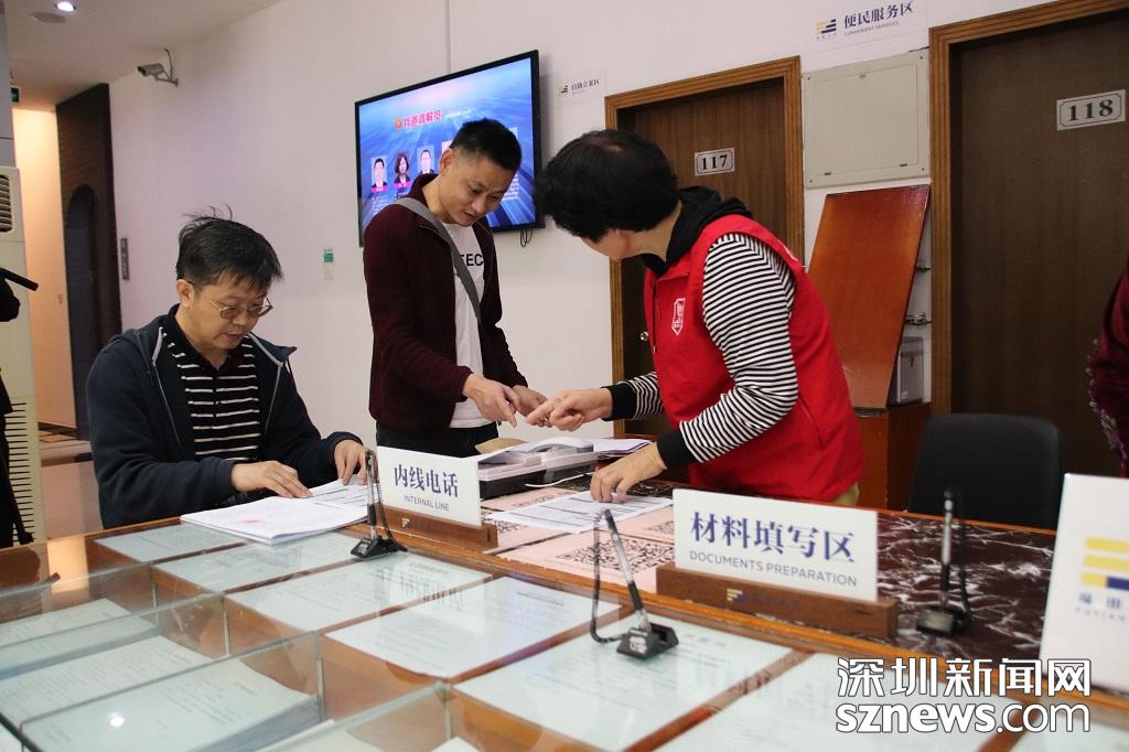 義工指導(dǎo)前來(lái)立案的人填寫材料