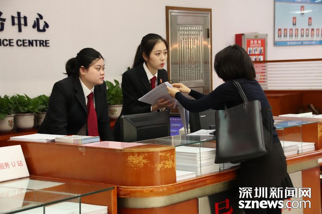 上午9點(diǎn),訴訟服務(wù)中心的工作人員提供咨詢服務(wù)