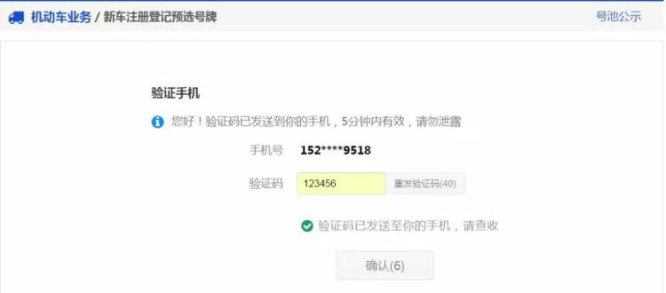 用戶(hù)須獲取并錄入手機(jī)短信驗(yàn)證碼,驗(yàn)證預(yù)選號(hào)牌的手機(jī)號(hào)碼。