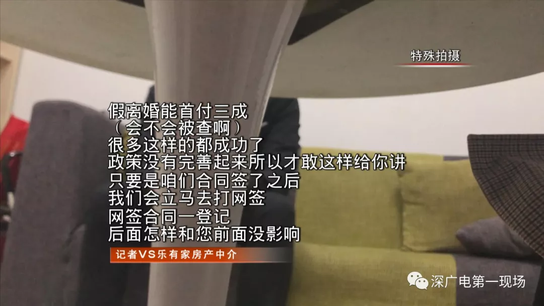 因?yàn)檫@家店已經(jīng)被王先生投訴,這名中介人員顯得非常謹(jǐn)慎,始終沒(méi)有說(shuō)出“假離婚”三字。隨后記者來(lái)到附近的樂(lè)有家蘭溪谷分店,得知記者的買房條件后,工作人員先是告訴記者第二套房需要首付七成,看記者有購(gòu)房意向,隨后改口稱可以幫忙辦理“假離婚”,不過(guò)要趁早。