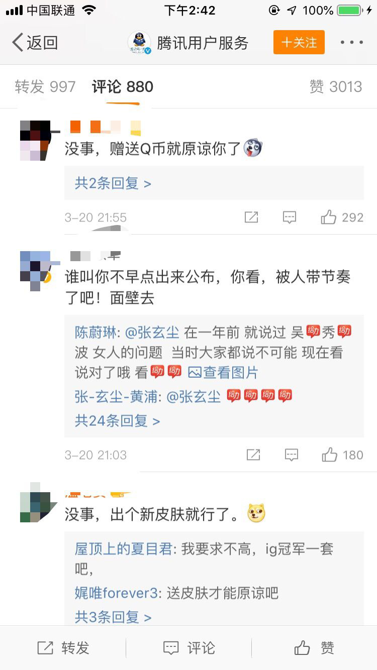 3月20日,微博認(rèn)證為騰訊公司公關(guān)總監(jiān)張軍在微博中解釋:因去年年底的一次活動(dòng)中的相關(guān)描述不夠清晰,目前已遵照要求完成整改。未來(lái)我們將在工作中引以為戒,避免類似問(wèn)題再次出現(xiàn)。