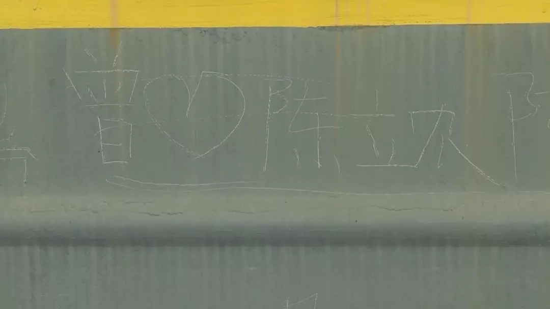 今天中午,記者來(lái)到現(xiàn)場(chǎng),看見(jiàn)兩節(jié)火車的車廂上都有多處被不文明涂寫的痕跡。有些痕跡是用手指直接涂寫的,有些則是用尖利器物刻寫。內(nèi)容大都是刻上名字,表達(dá)愛(ài)意,到此一游,甚至是寫詩(shī)。