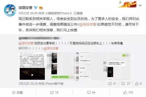 深圳交警接到舉報信息后實(shí)時關(guān)注事情動態(tài),盡快聯(lián)系舉報人員了解車內(nèi)詳情。