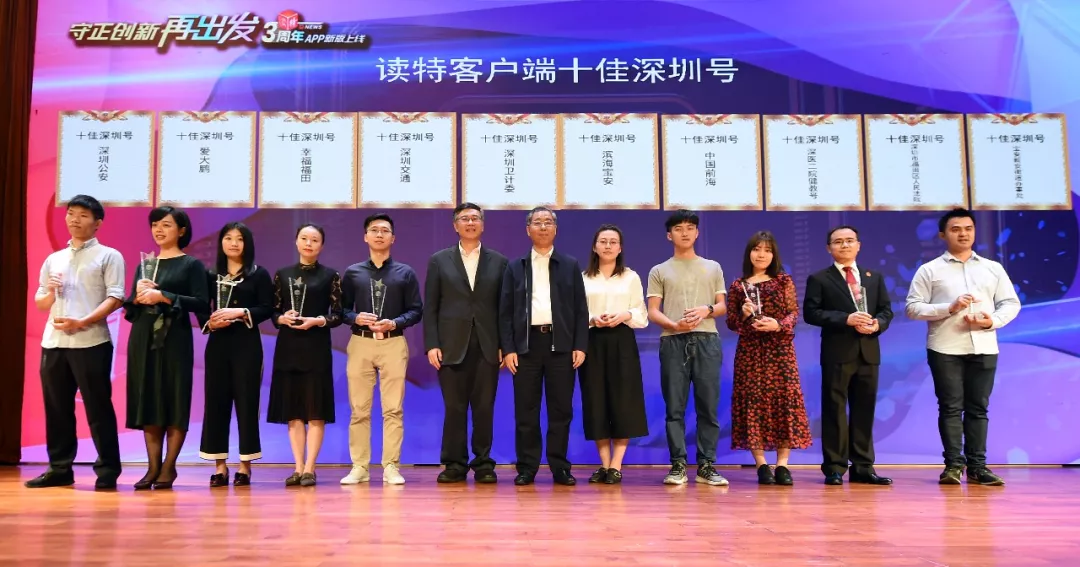 活動(dòng)現(xiàn)場(chǎng),根據(jù)發(fā)稿量、發(fā)稿質(zhì)量、傳播力、影響力等綜合數(shù)據(jù)的評(píng)比分析,讀特客戶端評(píng)選出10佳入駐深圳號(hào)。