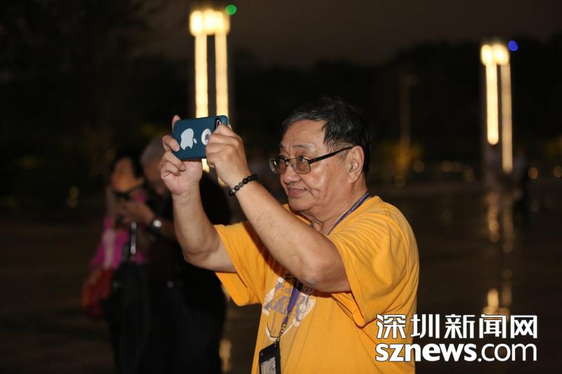 現(xiàn)場觀看燈光秀的市民