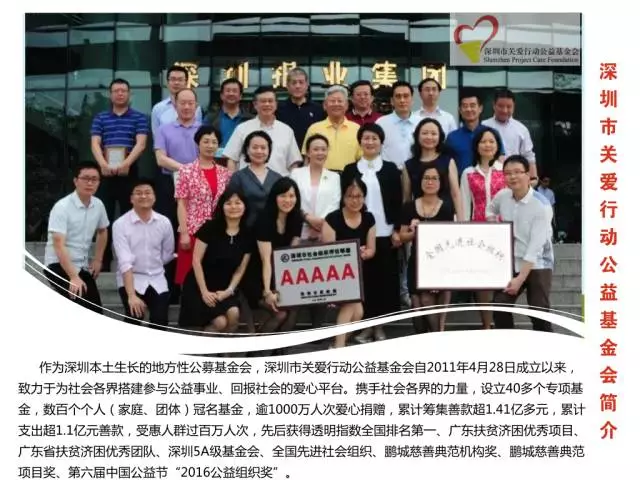 他說(shuō),深圳是一座因?yàn)閺V泛開展關(guān)愛活動(dòng)而更加令人矚目、受人尊敬的愛心之城,而深圳市關(guān)愛行動(dòng)公益基金會(huì)就是為了推動(dòng)關(guān)愛行動(dòng)而誕生的。多年來(lái),關(guān)愛基金會(huì)凝聚了數(shù)千萬(wàn)人次愛心捐贈(zèng),推出和資助的關(guān)愛項(xiàng)目數(shù)千個(gè),累計(jì)籌集善款逾2億元,公益支出超1.65億元,受惠人群數(shù)百萬(wàn)人次。因此也榮獲深圳市首家5A級(jí)基金會(huì)、全國(guó)先進(jìn)社會(huì)組織等系列榮譽(yù)??梢哉f(shuō),深圳市關(guān)愛行動(dòng)公益基金會(huì)為深圳這座文明和諧的關(guān)愛之城做出了重大貢獻(xiàn)。而這愛心成果的背后,是在座各位及社會(huì)各界愛心人士的共同努力、共同愛心奉獻(xiàn)的結(jié)果!“關(guān)愛路長(zhǎng),善者致遠(yuǎn),今年是新中國(guó)成立70周年,是脫貧攻堅(jiān)、決勝全面建成小康社會(huì)的關(guān)鍵之年。深圳作為改革開放的受益者,在新的歷史起點(diǎn)上,我們應(yīng)繼續(xù)秉承深圳“關(guān)愛、感恩、回報(bào)”的精神,奮力擔(dān)當(dāng)新的偉大歷史使命,為建設(shè)更加繁榮美好的祖國(guó)和幸福家園繼續(xù)努力!”