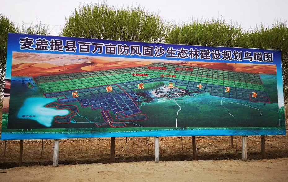 每年春秋兩季,麥蓋提縣約10萬(wàn)名干部群眾都要到沙漠里植樹