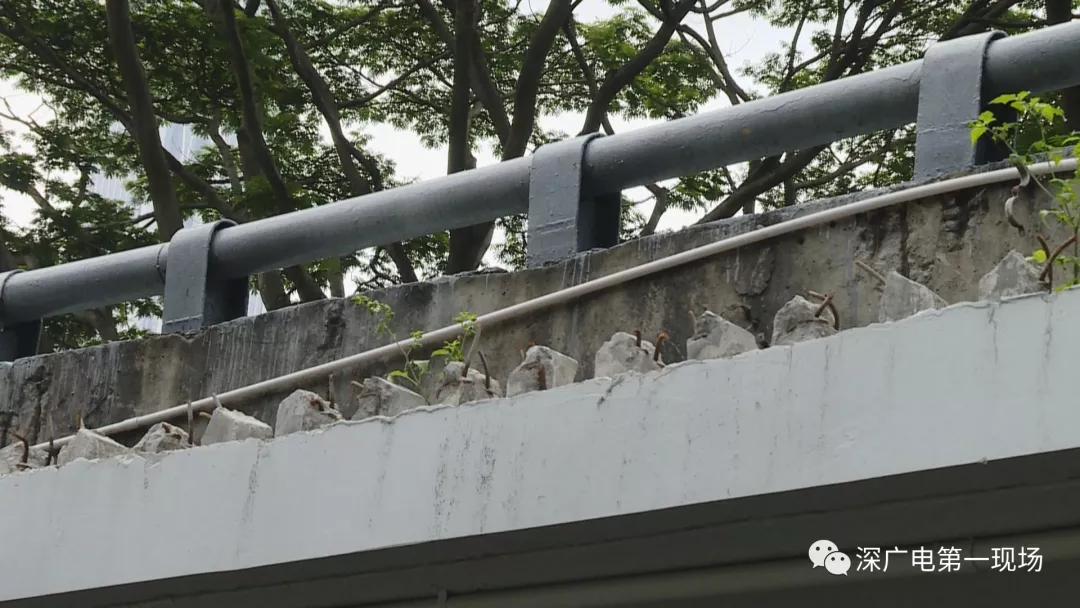 立交橋上的護(hù)欄老化破損嚴(yán)重