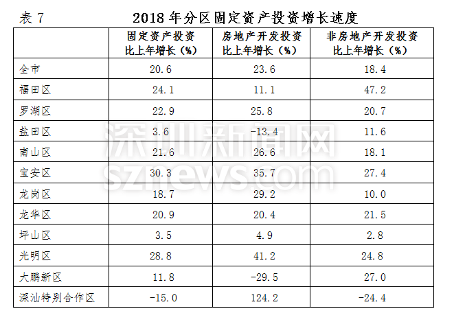 2018年,深圳全市固定資產(chǎn)投資比上年增長20.6%。其中,房地產(chǎn)開發(fā)投資增長23.6%;非房地產(chǎn)開發(fā)投資增長18.4%。分投資主體看,國有經(jīng)濟(jì)投資增長36.7%;民間投資增長12.5%;港澳臺商經(jīng)濟(jì)投資下降22.6%;外商經(jīng)濟(jì)投資增長30.3%。