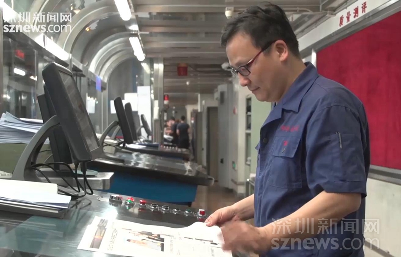 凌晨3時,深圳報業(yè)集團(tuán)印刷廠工程師老徐在查看報樣(秦川 涂勝 齊釗遠(yuǎn))