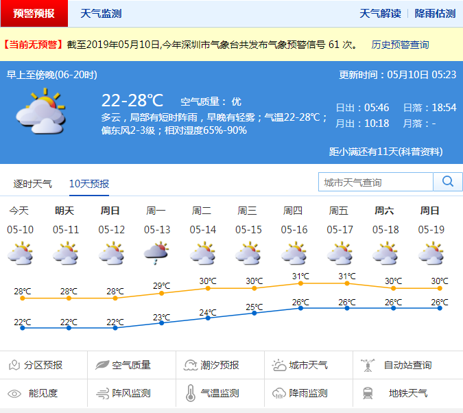 深圳新聞網(wǎng)2019年5月10日訊 雨終于停了!深圳今天最高氣溫28℃,多云,局部有短時陣雨,“夏天”怕是要回來了!