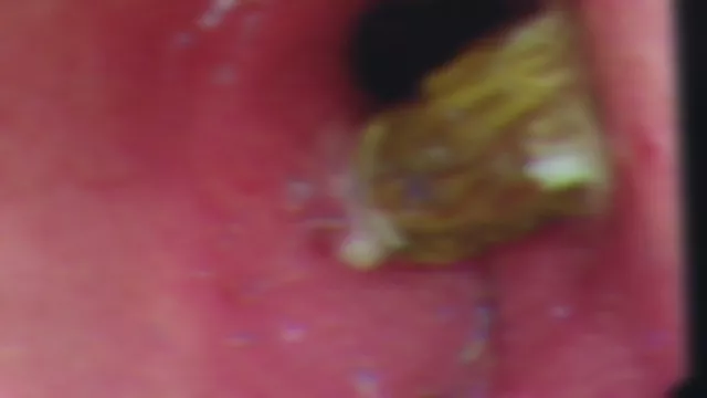 從內鏡顯示屏上看,張女士胃竇部位卡著一顆棕色核樣異物,如果不及時取出,會有胃穿孔的風險,那這異物到底是啥呢?