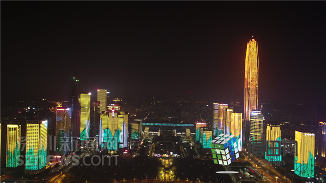 文博會(huì)期間,深圳市民中心的燈光秀每晚三場新舊版本輪番播放。