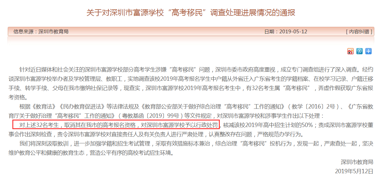 32名“高考移民”全部取消報(bào)名資格