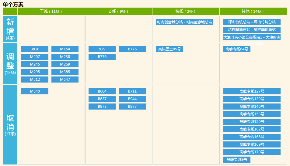 一、對(duì)坪山、光明、大浪等區(qū)域公交線網(wǎng)進(jìn)行優(yōu)化改善,有效解決相關(guān)片區(qū)內(nèi)的出行改善訴求;