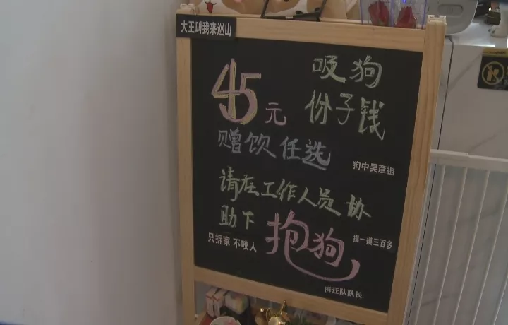 雖然不是周末,還是有顧客在里面消費(fèi),記者看到,收費(fèi)欄寫著45元吸狗份子錢,贈送飲品。