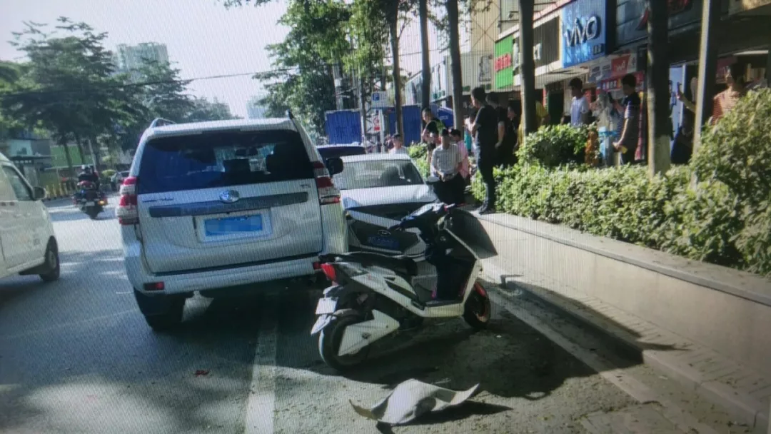 直到15時(shí)30分左右,郭某亮駕駛粵B****P號(hào)牌機(jī)動(dòng)車準(zhǔn)備回沙井,其從羅湖筍崗走北環(huán)大道轉(zhuǎn)107國(guó)道,到了沙井走南環(huán)路轉(zhuǎn)東環(huán)路,行駛至沙井上南大街某購(gòu)物廣場(chǎng)時(shí)追尾了一輛粵S****9號(hào)牌面包車,方向盤失控后又撞到了停在路邊的兩輛小轎車。