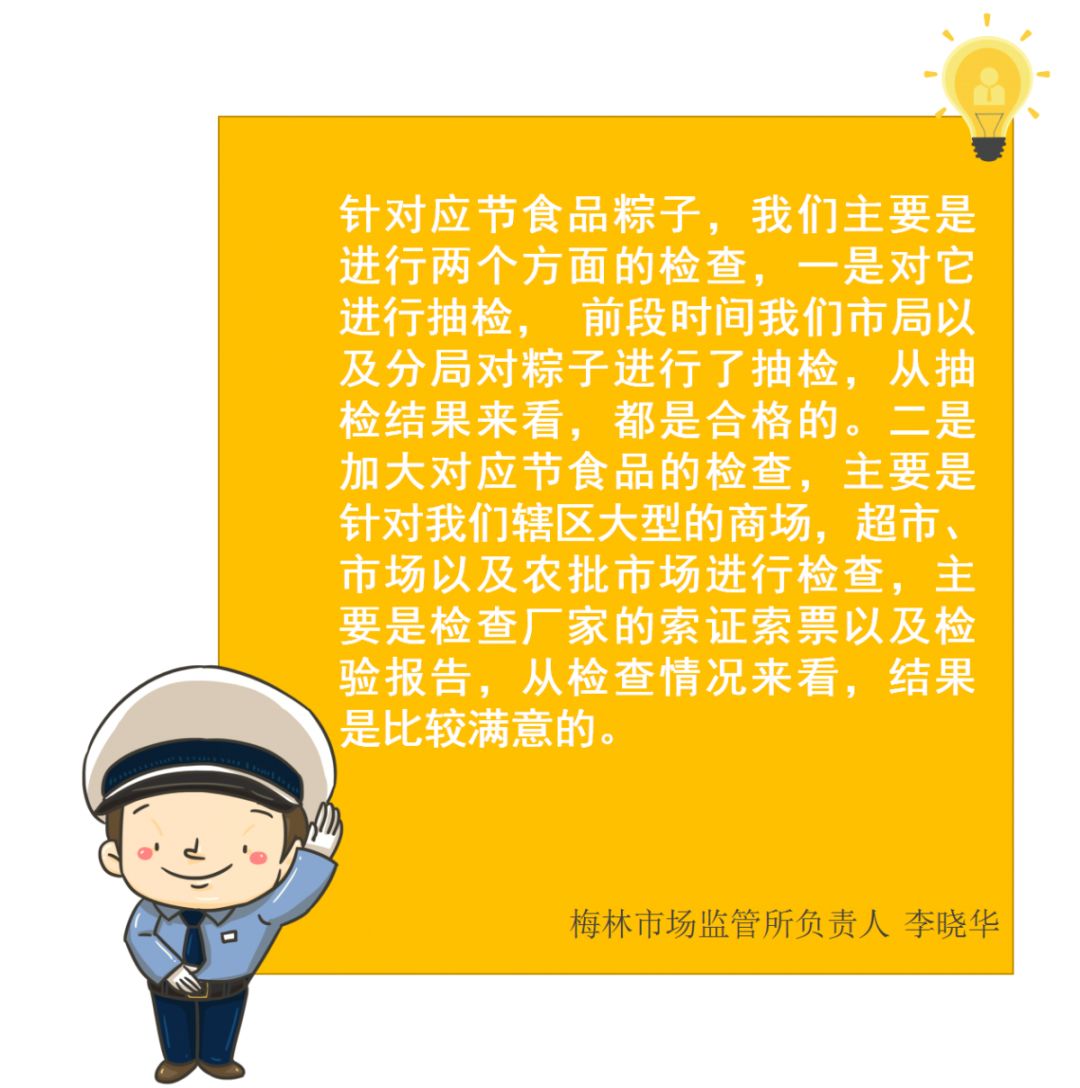 本次共抽檢生產(chǎn)、流通、餐飲環(huán)節(jié)應(yīng)節(jié)食品(粽子)200批次,涉及經(jīng)營主體123家次,共檢測食品指標(biāo)1738項次,全部檢測合格。