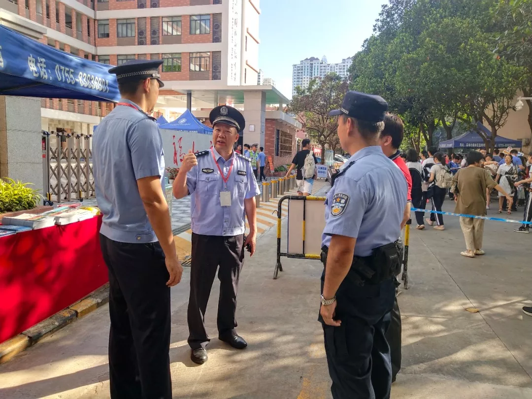 考試開始和結(jié)束時,在深圳實驗學校中學部的考場外,家長們自發(fā)組織的義工服務(wù)隊也正在有序地維護著考場外的秩序。通心嶺派出所積極與本次家長義工服務(wù)隊的成員溝通,在考試結(jié)束后散場時能夠快速緩解人流,保證考場周邊的秩序。