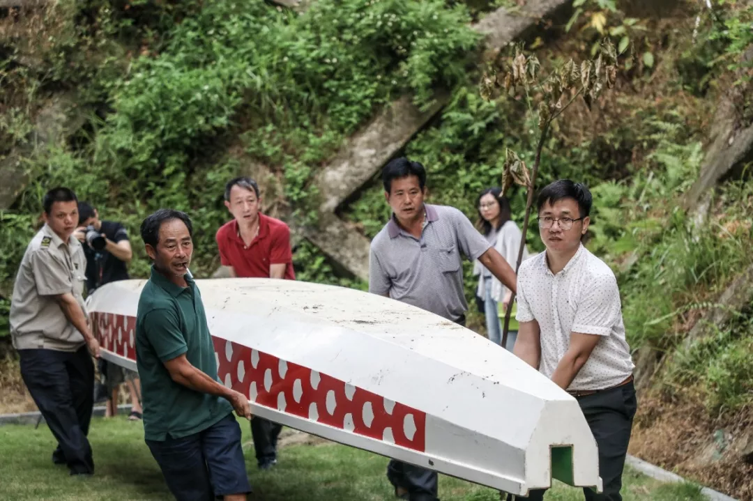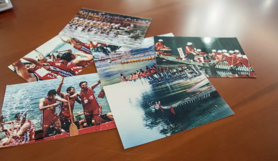 在51歲社區(qū)居民洪照球的記憶中,這個池不斷上演著龍舟的故事,記憶從未斷絕。洪照球回憶,他小時候就從長輩口中知道有“五月初五劃龍舟”這一習(xí)俗,不過與現(xiàn)在不同的是,當(dāng)時他們劃的是漁船,大人們聚集在“風(fēng)水池”,劃起漁船,將粽子投入水中,通過這種方式紀(jì)念屈原、慶祝節(jié)日。漸漸長大后,他就跟著哥哥們一起拿起船槳。