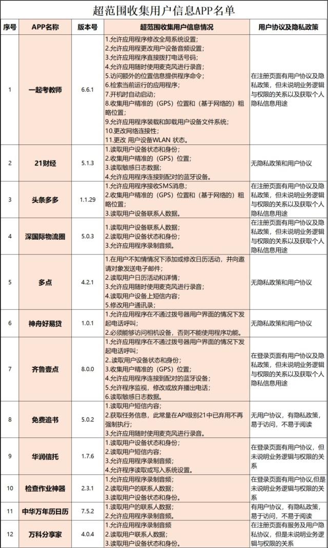 深圳特區(qū)報廣州7月4日電 根據(jù)公安部“凈網(wǎng)2019”專項行動和中央網(wǎng)信辦、工信部、公安部、市場監(jiān)管總局四部委關(guān)于開展APP違法違規(guī)收集使用個人信息專項治理行動部署,廣東省公安機關(guān)近期持續(xù)開展2019年第二季度超范圍收集用戶信息APP清理整治工作,共監(jiān)測發(fā)現(xiàn)1048款A(yù)PP存在超范圍收集用戶信息行為。其中,“酷狗音樂”“藝龍旅行”“語文100分”等42款A(yù)PP,存在超范圍讀取用戶通話記錄、短信或彩信,收集用戶通訊錄、用戶設(shè)備上已知賬號,超權(quán)限使用用戶設(shè)備麥克風等突出安全問題。目前,有關(guān)監(jiān)測情況已上報公安部通報屬地公安機關(guān)開展清理整治。