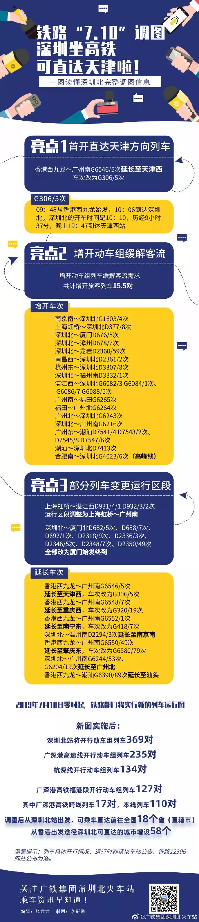 根據(jù)新的運(yùn)行圖安排,深圳北站將開(kāi)行動(dòng)車(chē)組列車(chē)369對(duì),廣深港高速線開(kāi)行動(dòng)車(chē)組列車(chē)235對(duì);杭深線開(kāi)行動(dòng)車(chē)組列車(chē)134對(duì)?!?·10”調(diào)圖后,深圳北站首開(kāi)前往天津方向列車(chē),屆時(shí)從深圳北站出發(fā),可乘車(chē)直達(dá)前往全國(guó)18個(gè)?。ㄖ陛犑校粡南愀鄢霭l(fā)途徑深圳北可直達(dá)的城市增設(shè)58個(gè)。