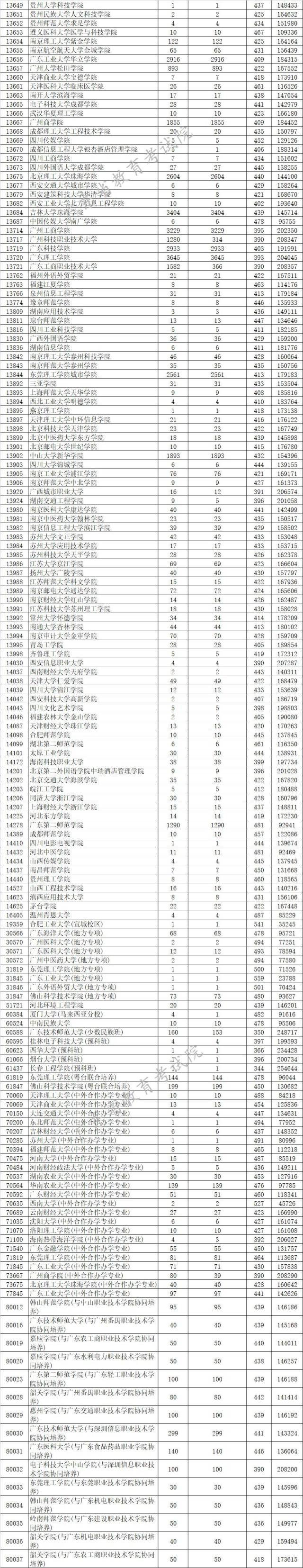 廣東省2019年本科文科最低分數(shù)線上投檔情況