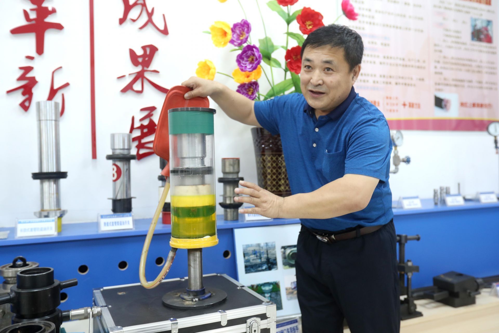 見(jiàn)到段福海時(shí),他身著一件藍(lán)色Polo杉,笑瞇瞇的,個(gè)頭敦實(shí),走路很快。在二樓展示廳里的一面墻上,擺滿了段福海的“發(fā)明創(chuàng)造”所獲的獎(jiǎng)狀。而在一墻之隔的“勞模創(chuàng)新工作室”,他發(fā)明的“家伙什兒”堆滿了整間屋。他用那布滿老繭的厚厚手掌隨便拿起一個(gè),開(kāi)始向記者介紹其用途。“你看,這個(gè)小東西成本才五毛錢(qián),卻解決了100萬(wàn)的難題。這個(gè)鋼絲球兩塊錢(qián),但給國(guó)家省了……”在油田一線工作的35年間,段福海研發(fā)的創(chuàng)新成果多達(dá)232項(xiàng),累計(jì)創(chuàng)造經(jīng)濟(jì)效益2.38億元。