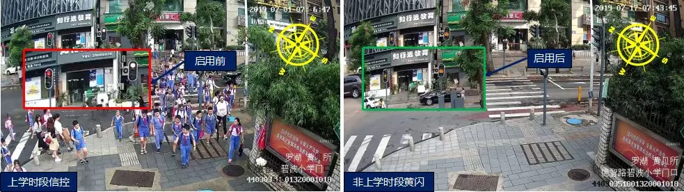 羅湖黃貝/德智路口上下學(xué)期間采取燈控設(shè)置,規(guī)范路口內(nèi)行車秩序,保證機(jī)動(dòng)車與行人的安全。因暑期行人、機(jī)動(dòng)車流量均明顯減少,蜀黍采取全天黃閃控制,提高機(jī)動(dòng)車通行效率。