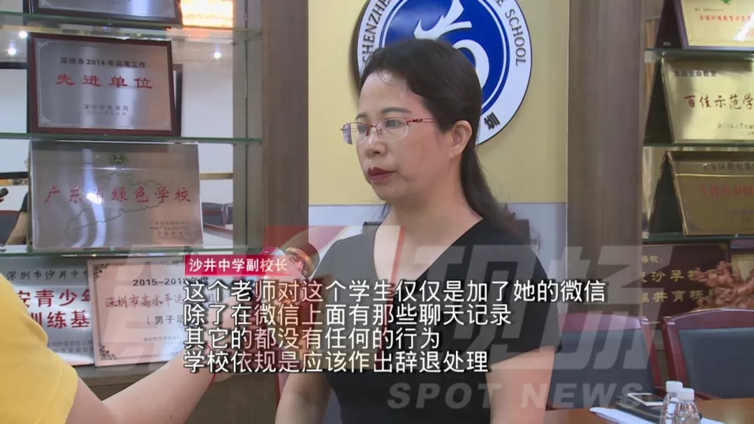 為詳細(xì)了解實(shí)際情況,記者來到了李先生女兒就讀的沙井中學(xué),學(xué)校的副校長(zhǎng)出面回應(yīng)稱,李先生反映的老師騷擾他女兒的情況確實(shí)存在,當(dāng)事人屬于臨聘教師,去年9月到該校任教,目前已經(jīng)被校方開除。
