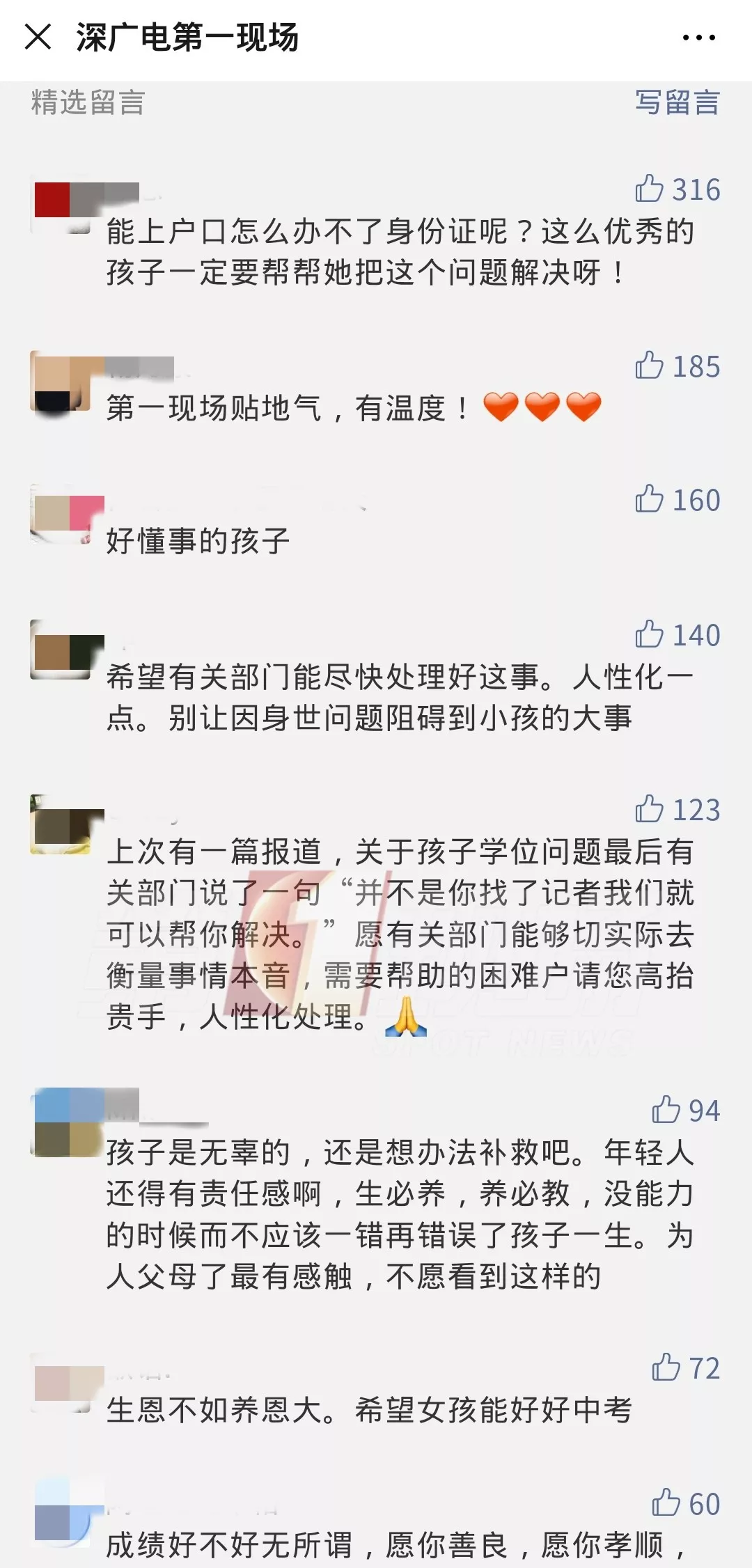 報(bào)道發(fā)出后,引發(fā)大量觀眾和網(wǎng)友的熱議,大家都很關(guān)心這個(gè)勤奮努力的姑娘會不會因?yàn)檗k不到身份證而參加不了中考了?相關(guān)部門對此能不能給予人性化處理呢?