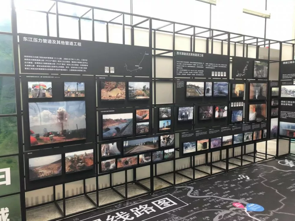 第三部分“清清東江水汩汩入鵬城”,著重展示東江水源工程建設(shè)的全過(guò)程。以工程線路為展覽線索,再現(xiàn)水務(wù)工作者在長(zhǎng)達(dá)106公里的戰(zhàn)線上奮戰(zhàn)的場(chǎng)面。通過(guò)輸水設(shè)施的新舊照片對(duì)比,描繪出一條在深惠兩城平地崛起的深圳“生命線”。