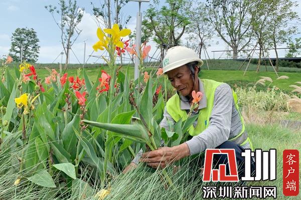 深圳新聞網(wǎng)7月24日訊(見圳客戶端、深圳新聞網(wǎng)記者 王世龍 周斐斐 王志明 羅瑜 董非 李詩萌 實習生 林怡)謝成生,來自廣西柳州,是深圳前海的一名綠化養(yǎng)護工人,主要負責前海運動公園的綠化養(yǎng)護工作,目前,他是養(yǎng)護部的技術班長。每天早上,他都會早早地來到自己工作的地方,迎著朝陽,對花木進行澆水、修剪、施肥,開始一天的勞作。