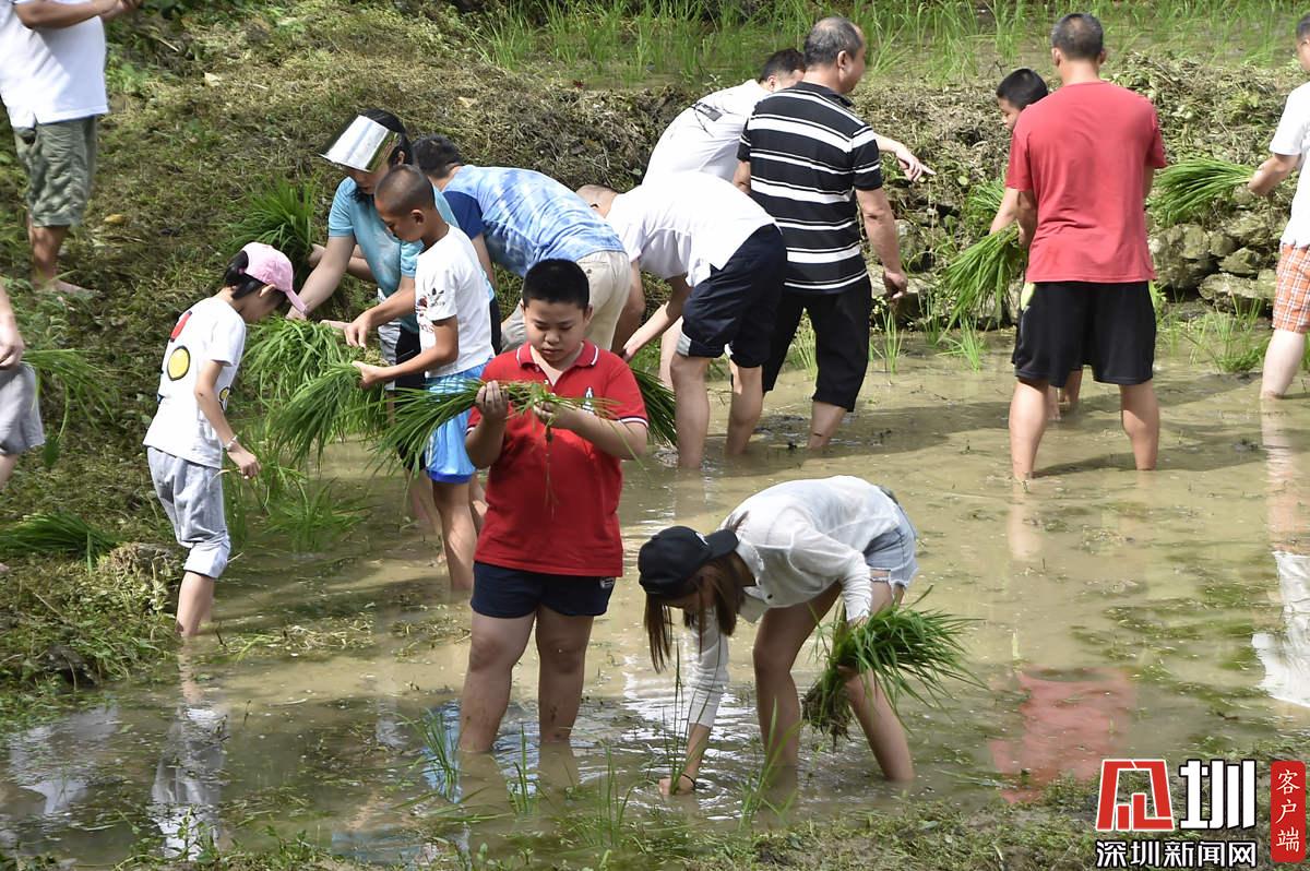 據(jù)了解,本次參加活動的青少年有100多名,他們手持秧苗,腳踩泥漿,在社區(qū)老黨員和家長的指導下體驗插秧農(nóng)耕作業(yè)。據(jù)南嶺村社區(qū)黨委書記張育彪介紹,在深圳高速城市化進程中,南嶺村特意保留了20畝水稻田,作為青少年的勞動教育基地。“目的是讓孩子們不要忘記勞動人民的本色,”他說,“通過感受勞動的艱辛,教育他們要熱愛勞動,富而思進。”